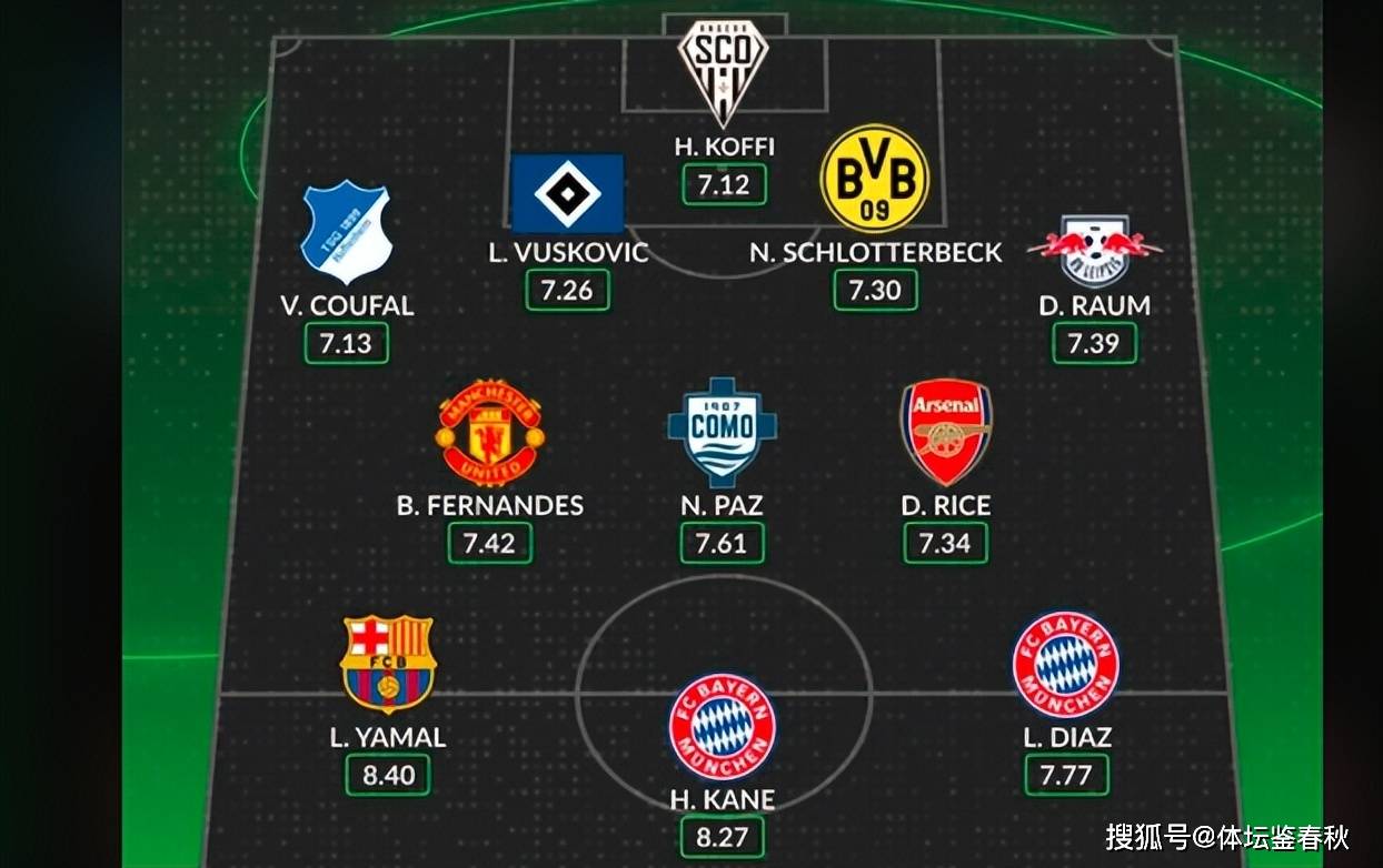 而这个阵容里最具压迫感的,还不是某一个球员,而是拜仁慕尼黑的恐怖攻击力,他们竟然有两名前锋同时入选。另外,这个阵容里还有贾马尔·穆西亚拉和迈克尔·奥利塞。这样的球员配置,几乎可以把所有速度和创造力写进一个战术板中。